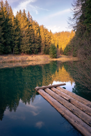 Čurabský klauz, jedna z nádrží dříve používaných k plávce dřeva pro potřeby frýdlantských železáren. Těsně před prvním sněhem..jpg